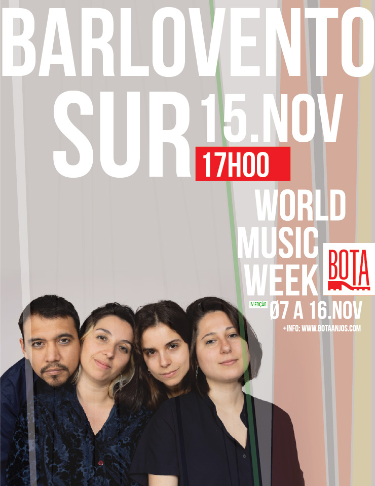 Barlovento Sur é um grupo dedicado a difundir a música latino-americana na cena cultural europeia. Sediados em Genebra, são originários do Chile, Argentina e Portugal, trazendo uma música criada de uma mistura espontânea entre os ritmos tradicionais do sul da américa latina e as sonoridades das músicas contemporâneas. Fundado em 2015 por Josefa Ibarra (voz e bombo) e Jorge Pacheco (voz e guitarra), o projeto cresceu e encontrou novas sonoridades como quarteto com a chegada da violinista Luisina Rábago e da violoncelista Beatriz Raimundo. Imersos na estética do new latin folk, o grupo mistura o pulso da percussão tradicional com harmonias abertas, entrelaça o lirismo das cordas com a força das vozes que cantam sobre a nossa história partilhada e o futuro que idealizam para o mundo.
